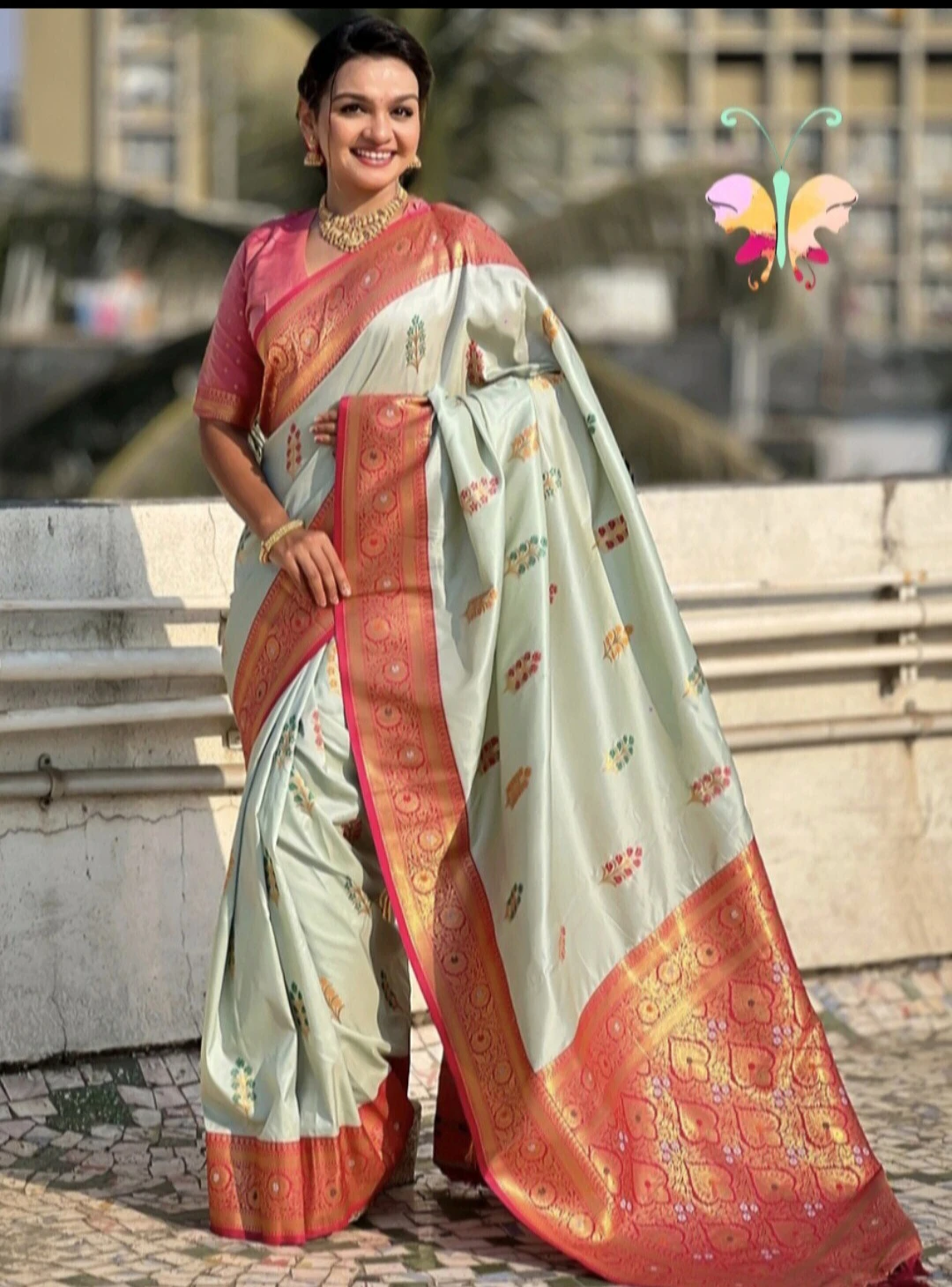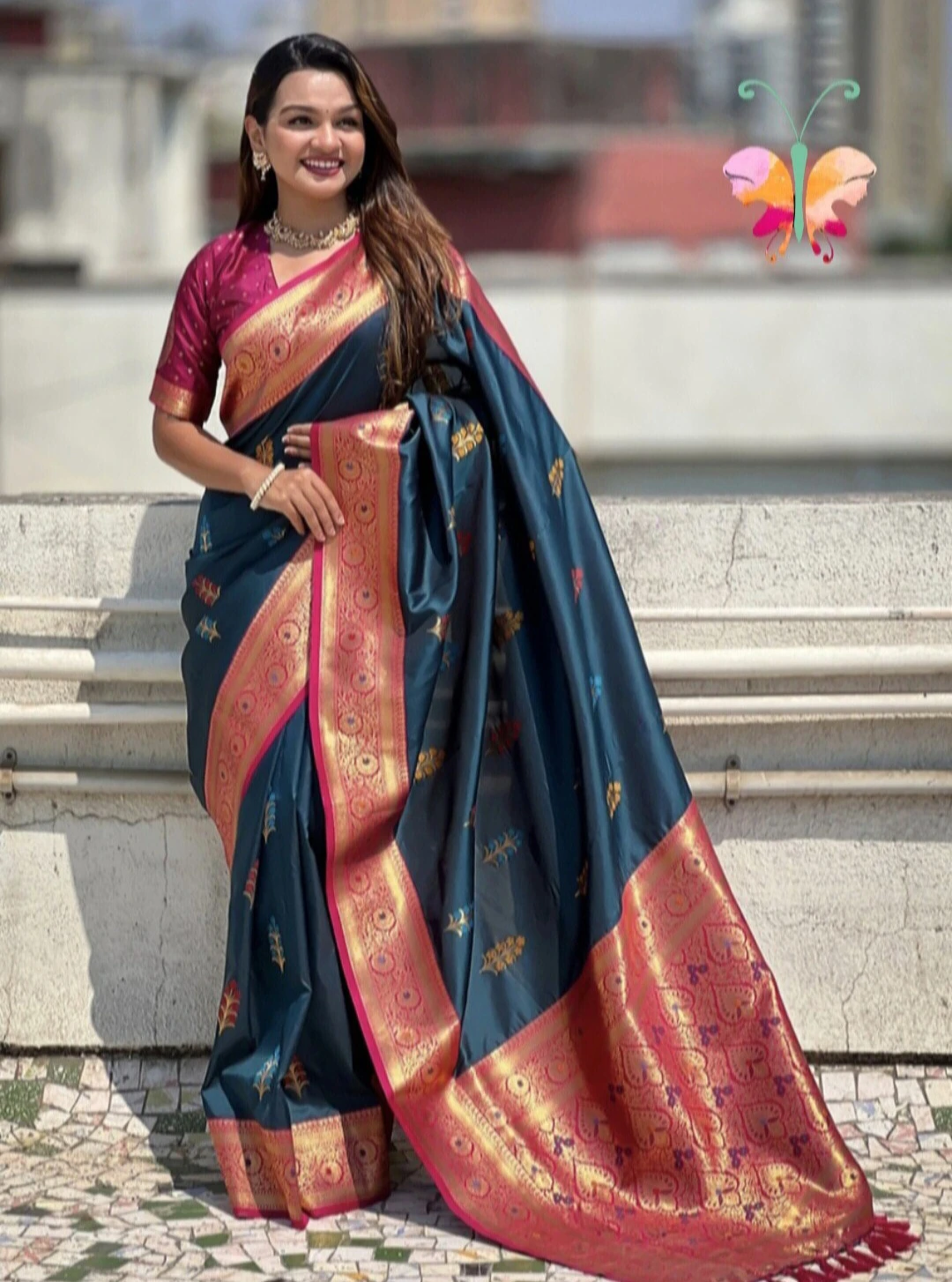 Saree Fabric: Banarasi silk saree with contrast blouse piece