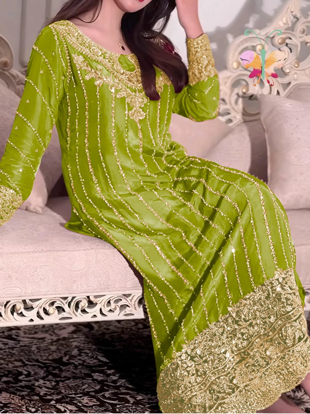 Plazzo Fabric: Heavy Chinon Silk With Embroidery 5 mm Sequence Work With Elastic