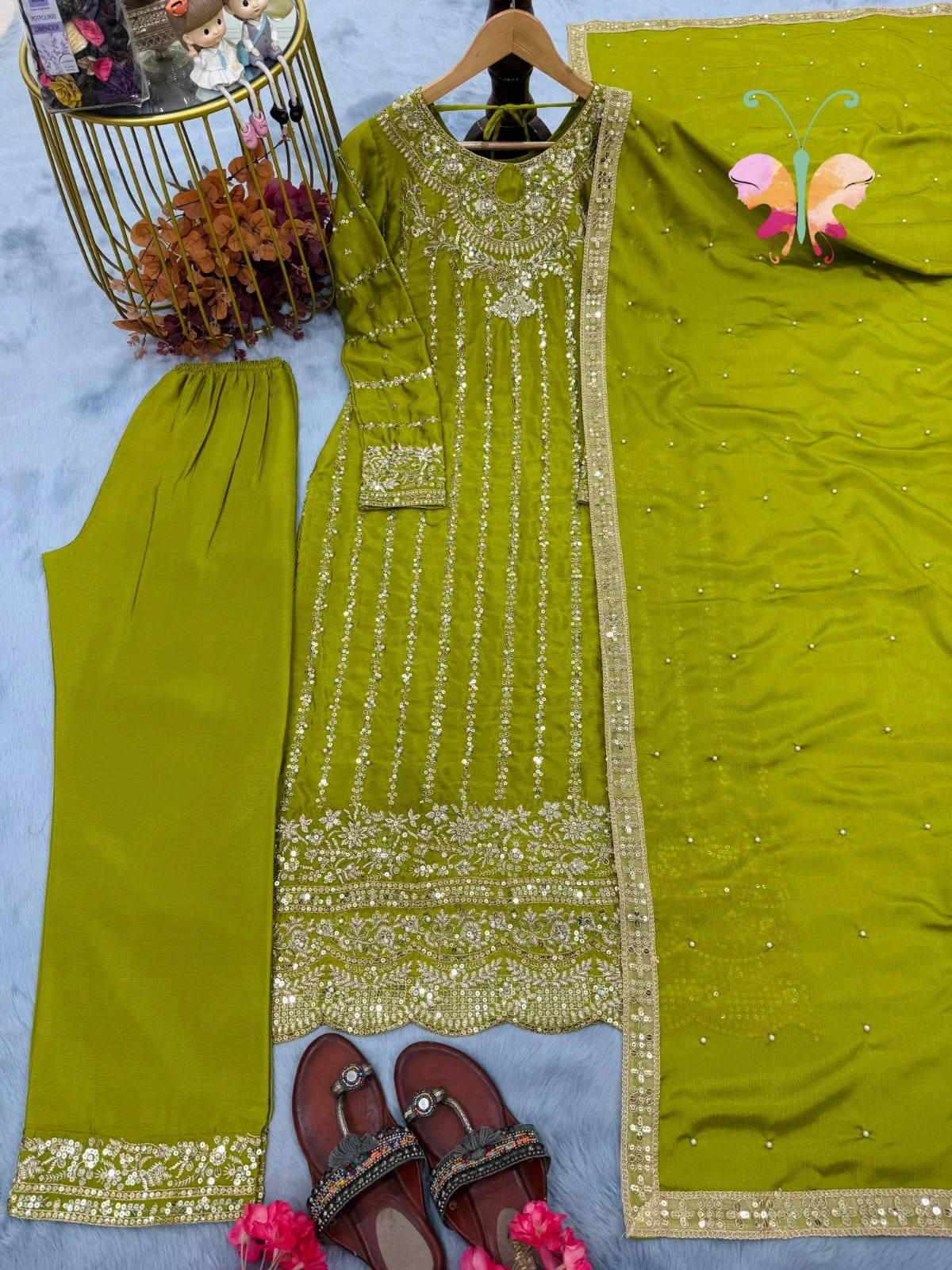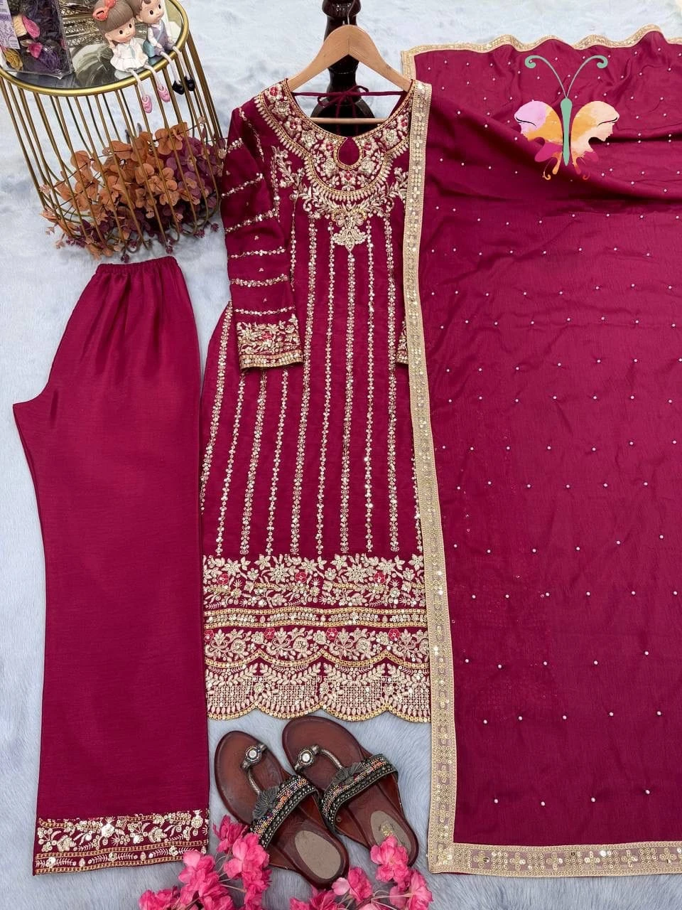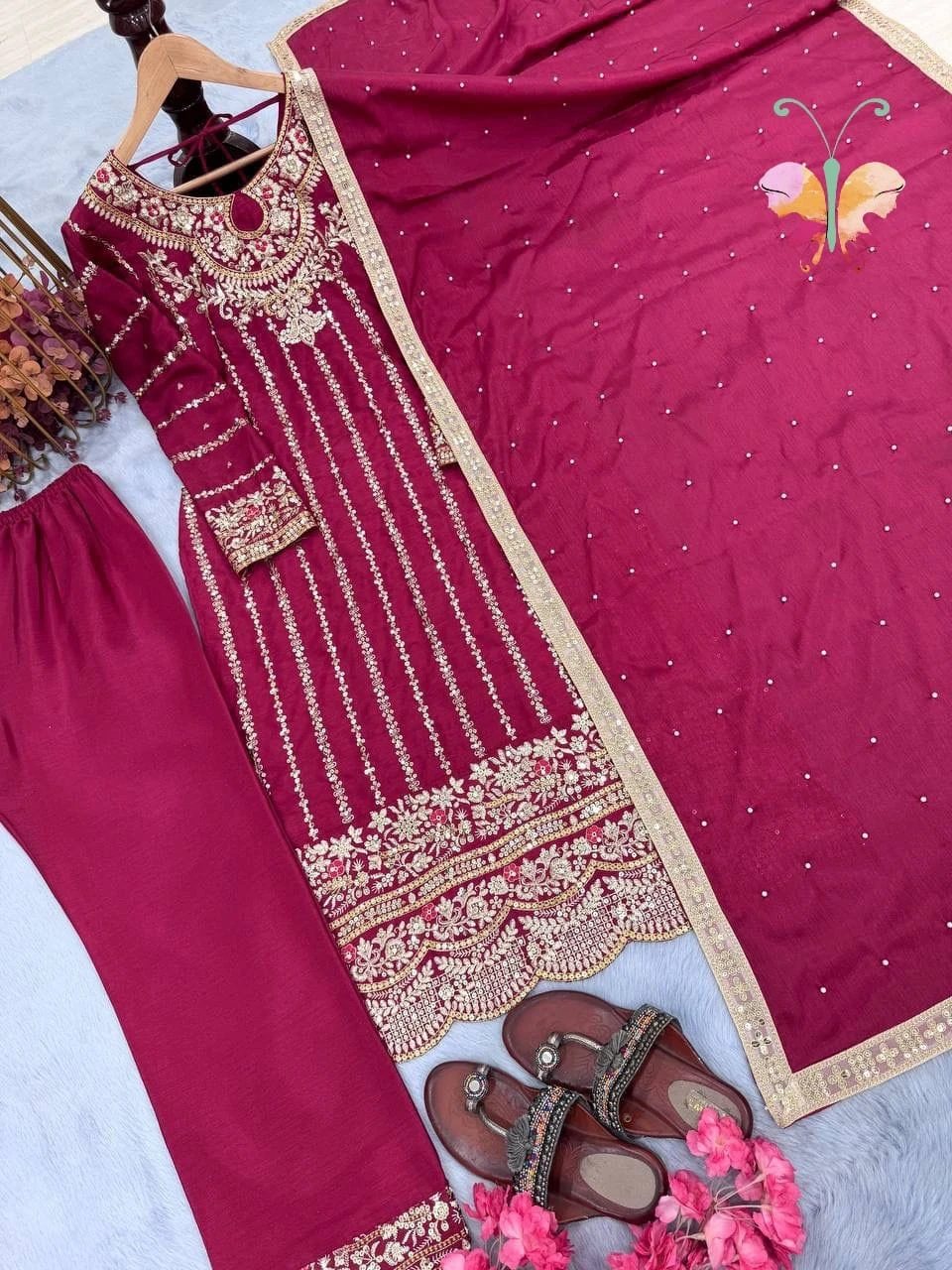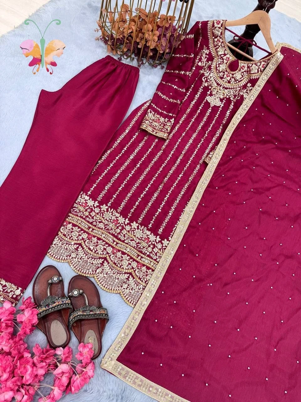 Look Pur Chinon Silk Top Plazzo & Dupatta Set 👗