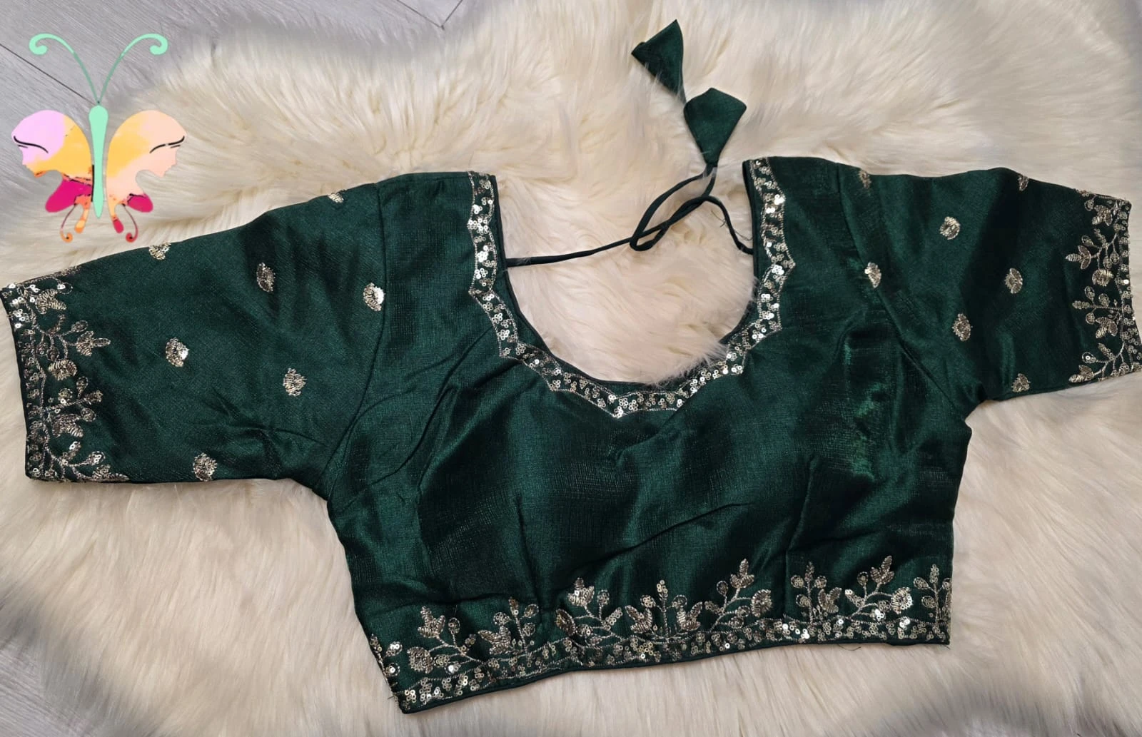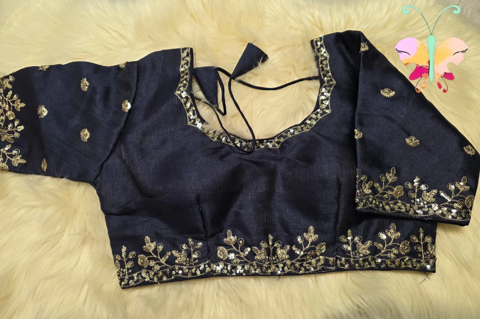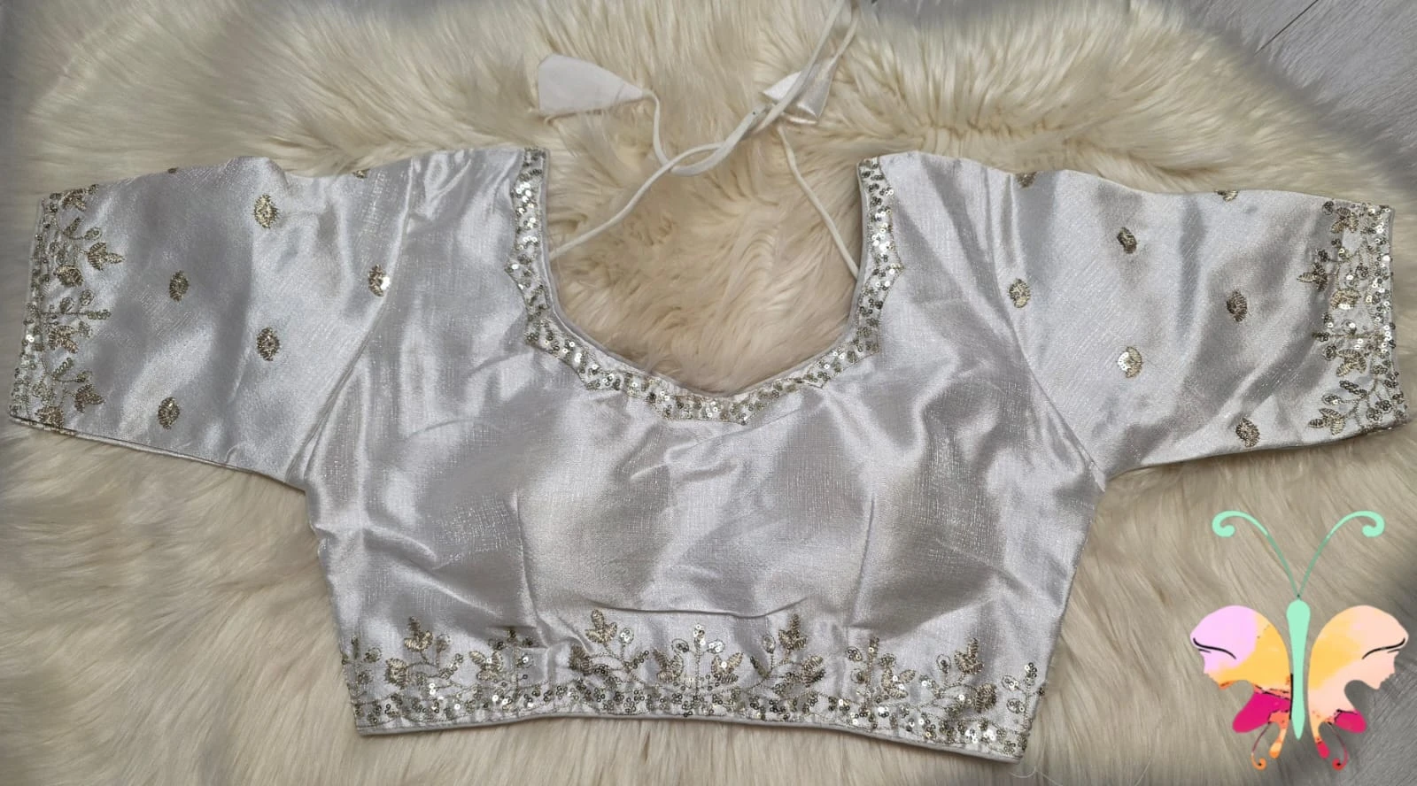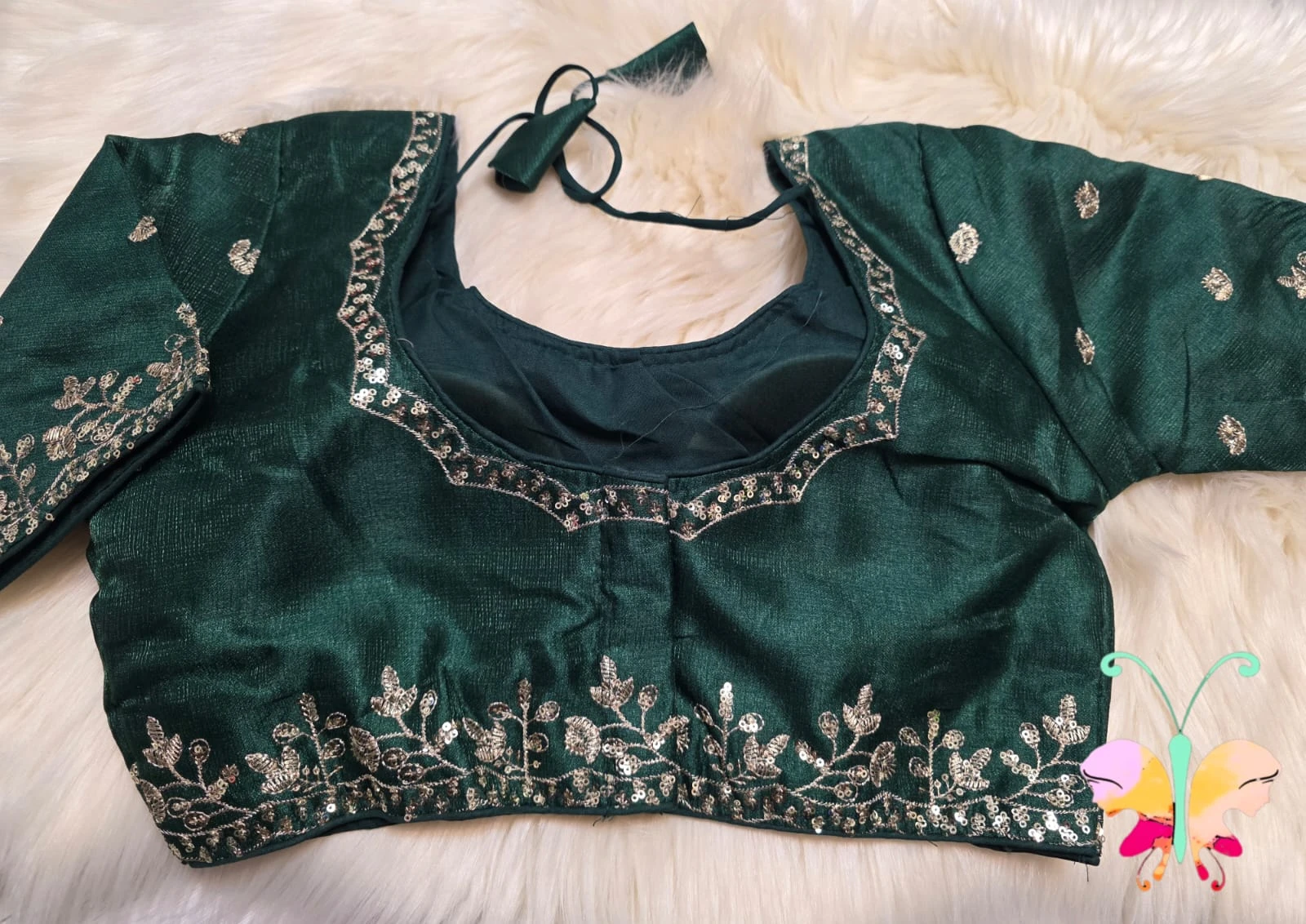 Elegant silk Fabric quarter sleeves readymade blouse with sequence with embroidery work with back open & padded