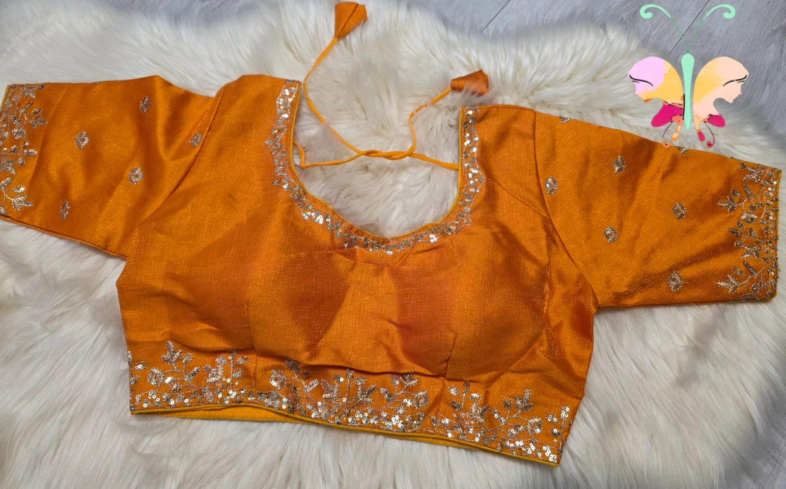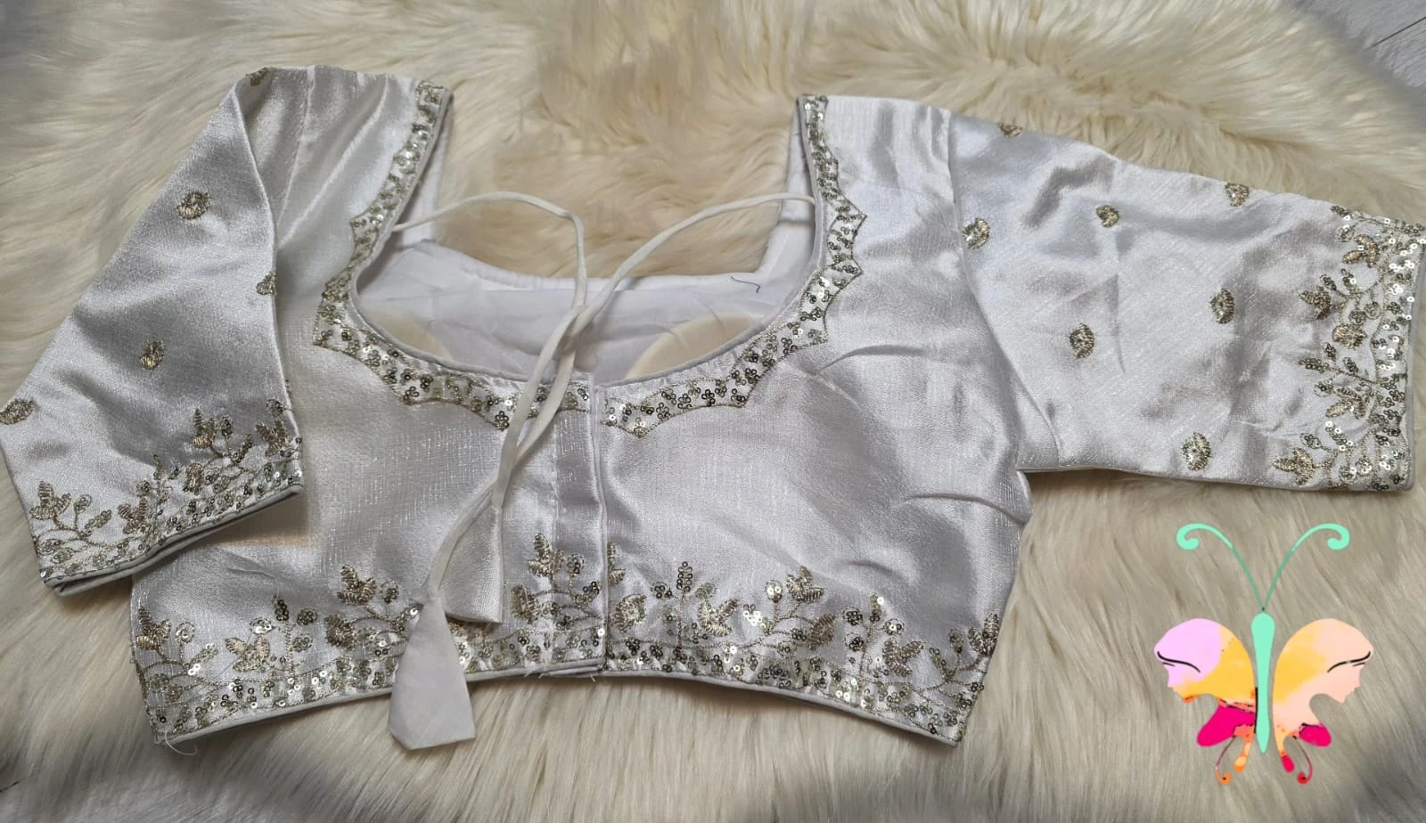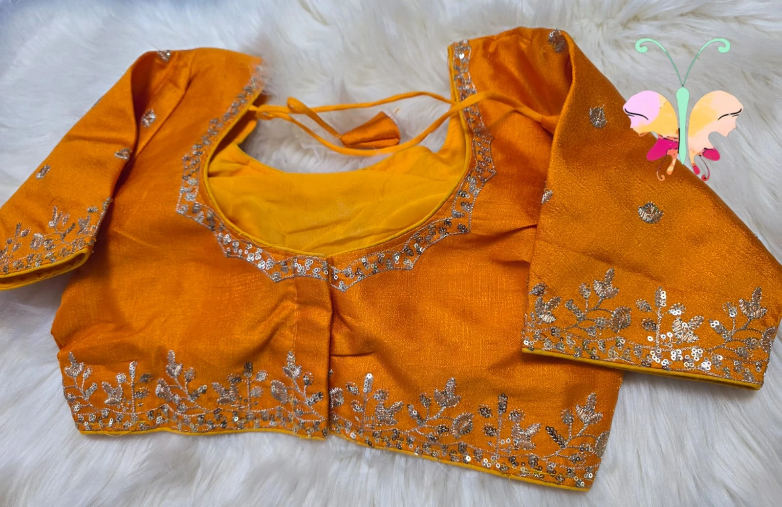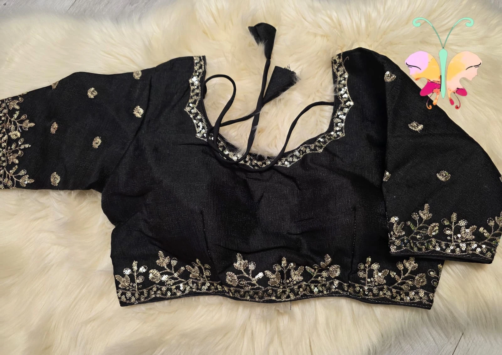 Elegant silk Fabric quarter sleeves readymade blouse with sequence with embroidery work with back open & padded