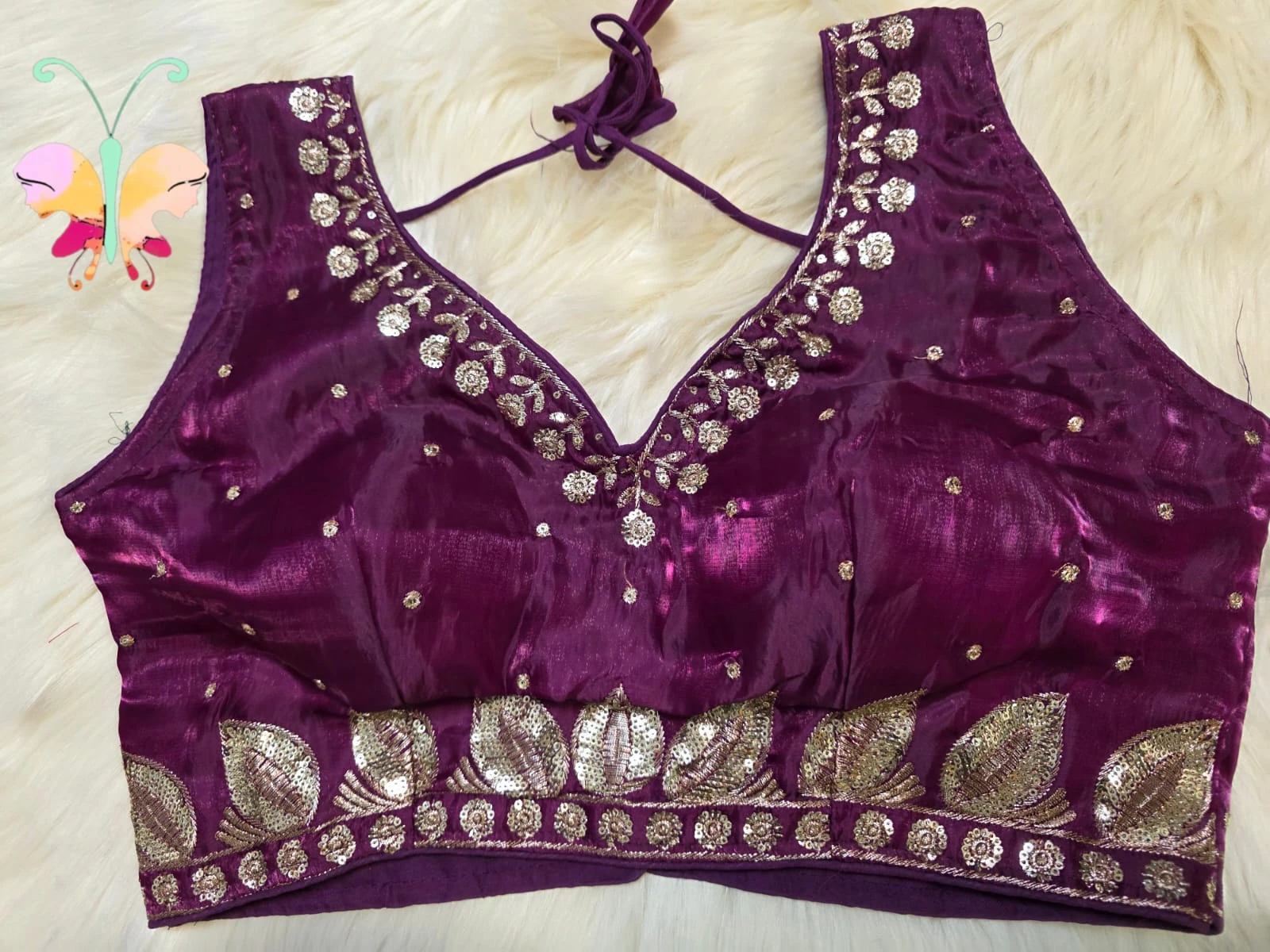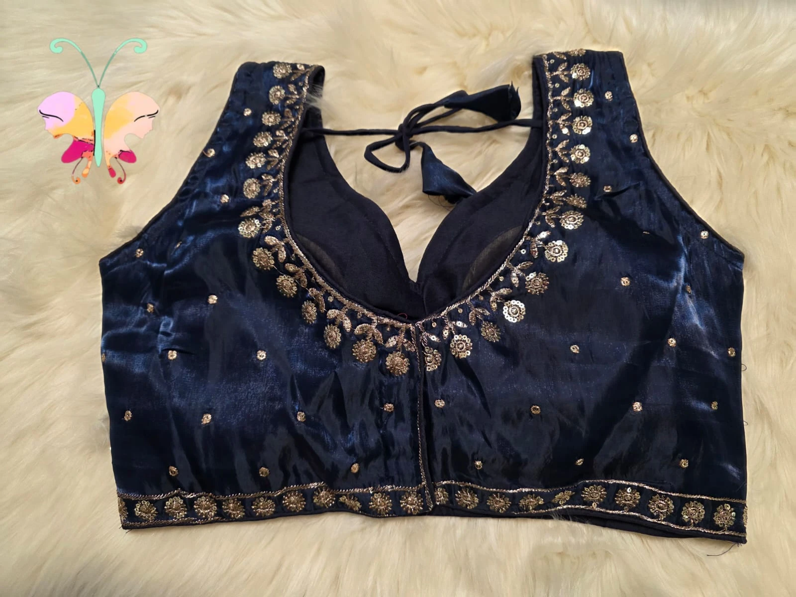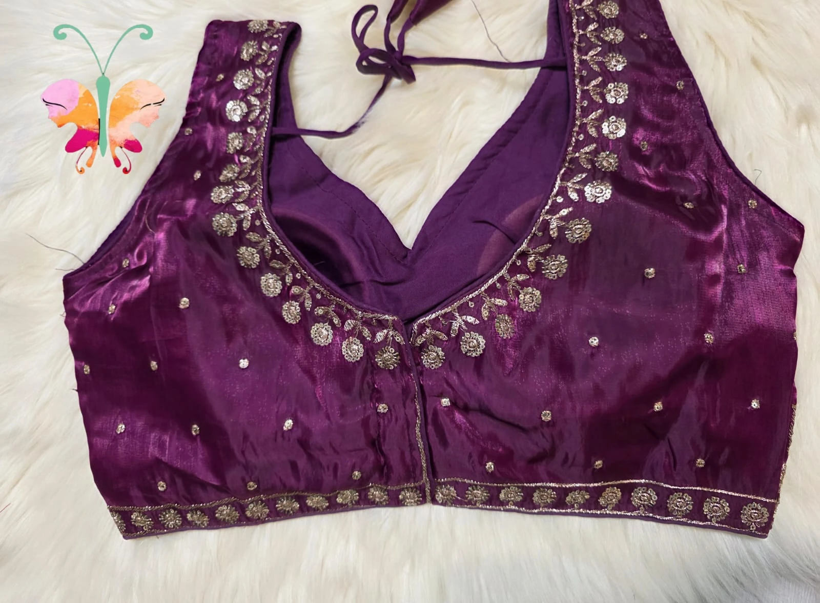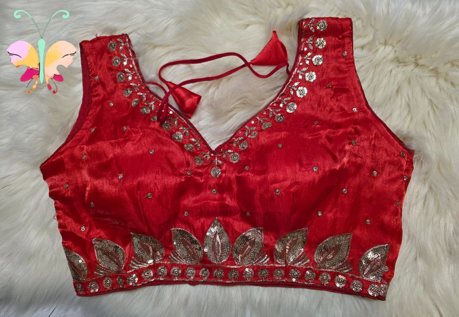 Jimmychoo fabric sleevles readymade blouse with sequence work also sleeves attached