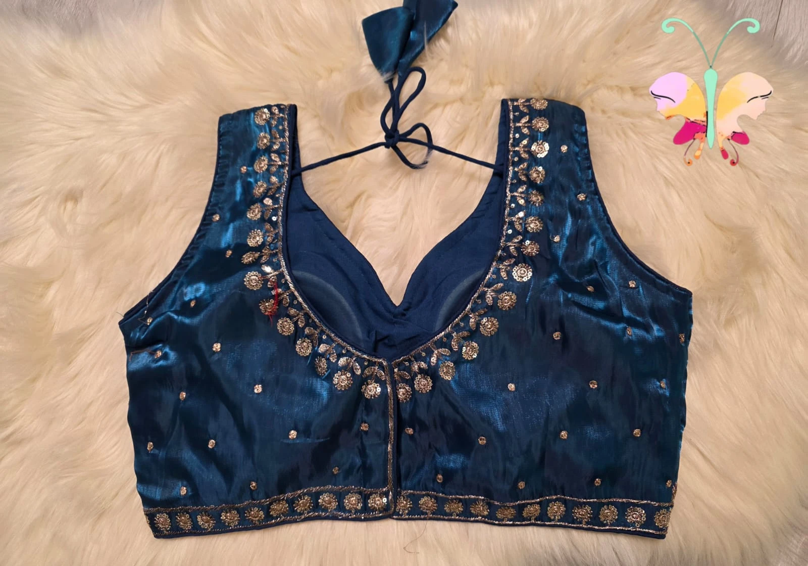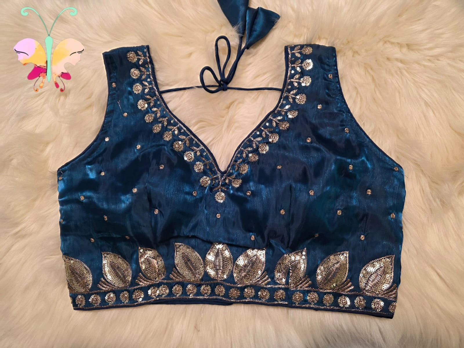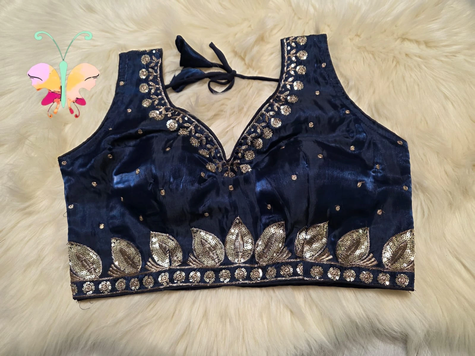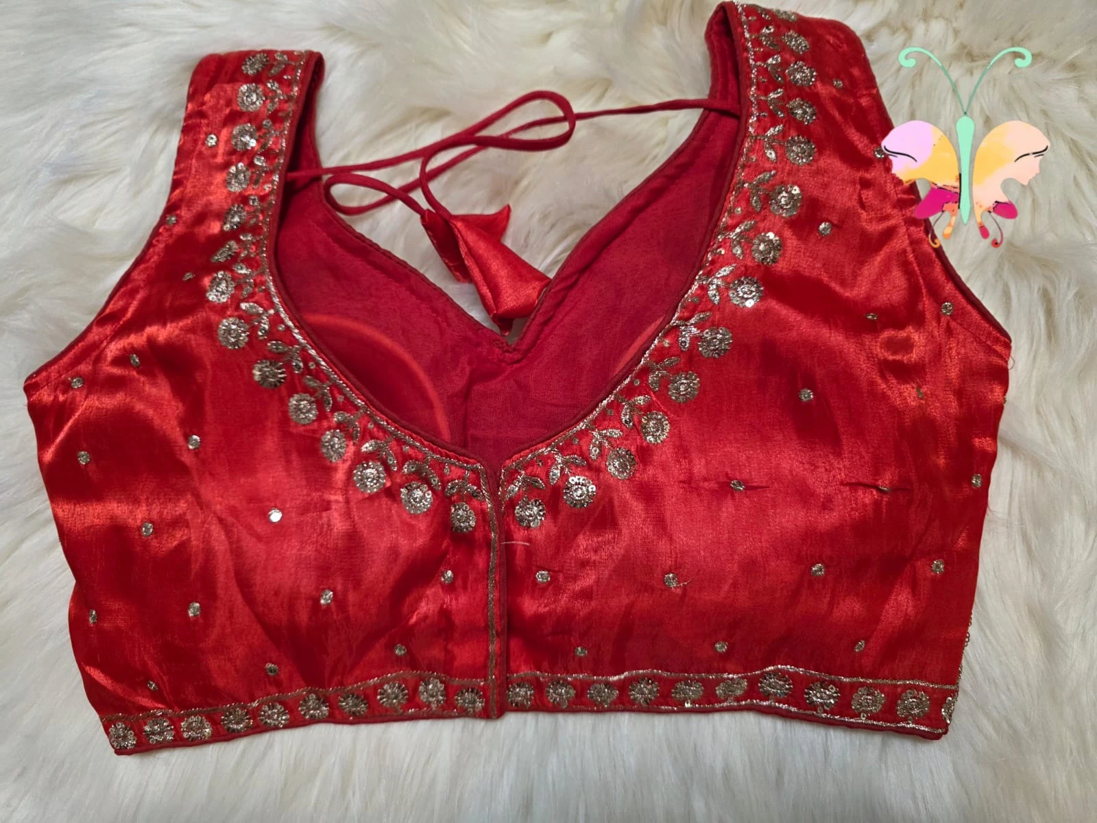Jimmychoo fabric sleevles readymade blouse with sequence work also sleeves attached